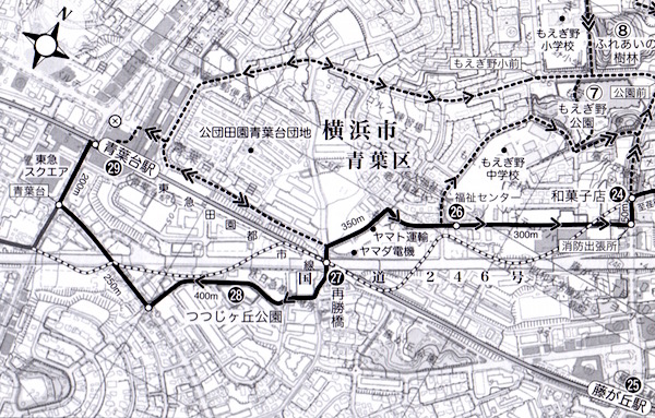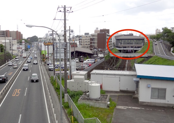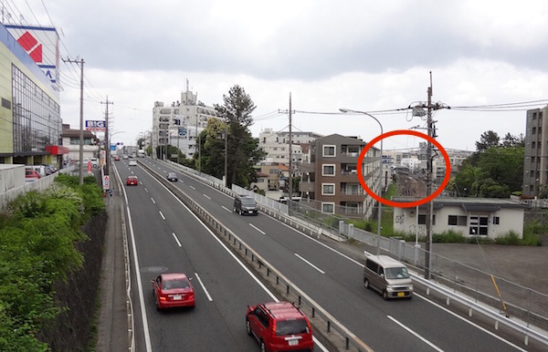 この橋は国道246号線を渡っているが、赤丸に見えるのが田園都市線の藤が丘駅である。