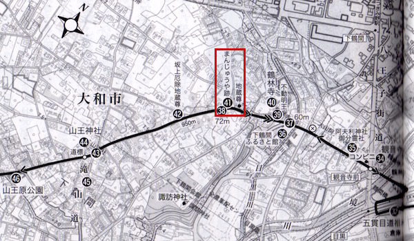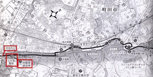 (20)「ふか草」看板、(21)地蔵堂・道祖神、町田市辻交差点