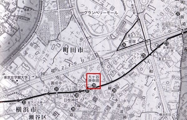 横浜水道道路との交差点は無意識に通りすぎてしまったようだ。気がついたら大ケ谷庚申塔の交差点だった(笑)