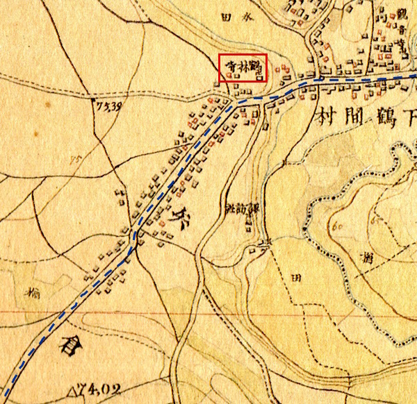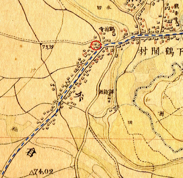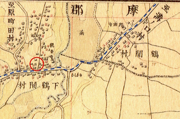 鶴間二丁目交差点は明治地図の赤丸の場所と思われる。