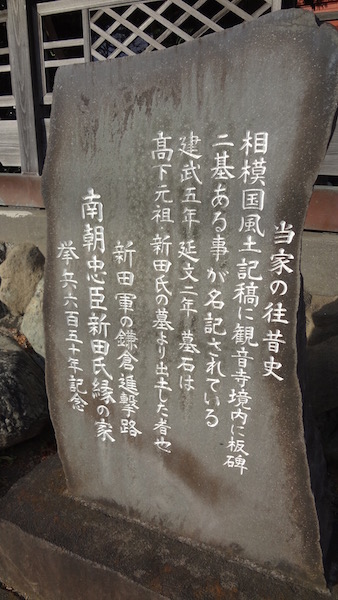 新田軍の鎌倉進撃路の途中にある家らしい。