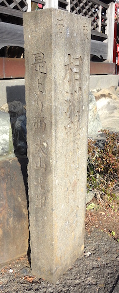 逆光で読みにくいが「是より東 江戸 十里」と書いてある。これを見た旅人は、大山が近くなったと感じることだろう。