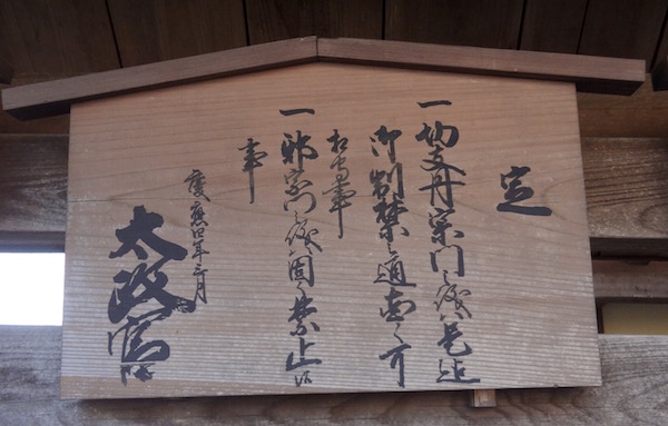 高札は基本的な法令を板札に墨書きし、庶民への法令の徹底を意図したものです。禁令の掲示は奈良時代からみられますが、江戸時代に発達し、明治6年(1873)まで続きました。明治新政府は慶応4年(1868)旧幕府の高札を撤去し、新政府が定めたいわゆる「五榜の掲示」を掲げさせました。