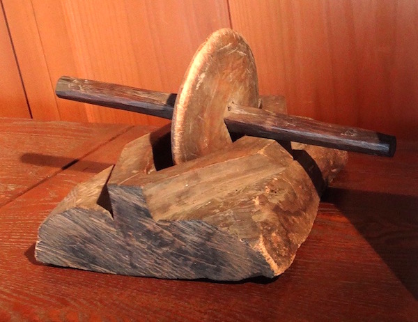 生薬には金属をいやがるものもあるので、木でできた薬研もありました。
