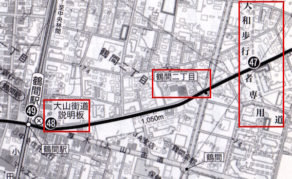 (47)大和歩行者専用道、鶴間二丁目交差点、(48)大山街道説明板