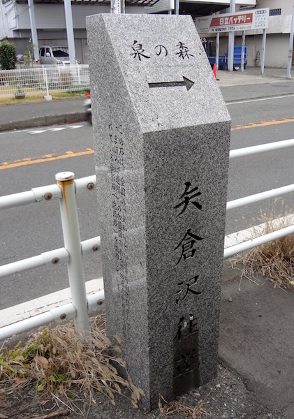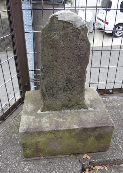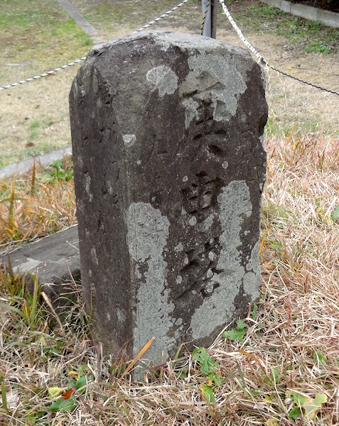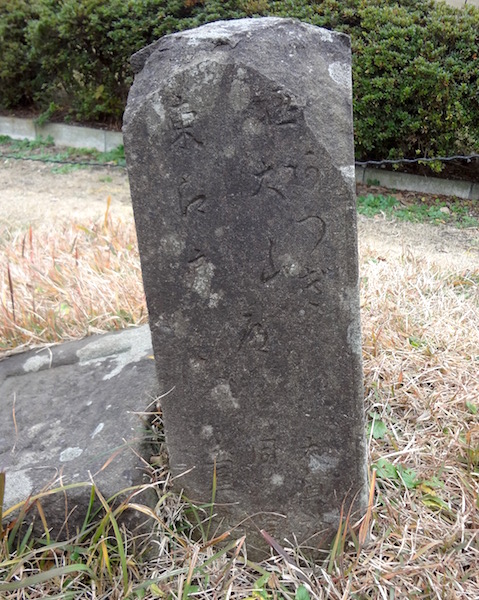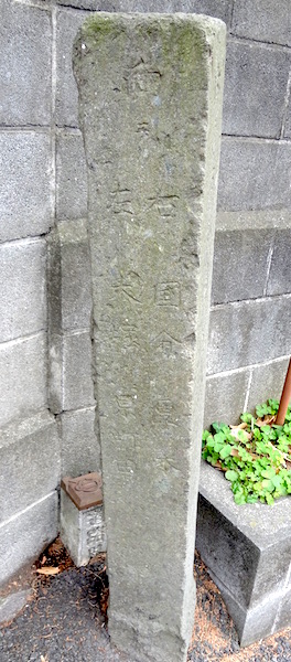 ガイドブックには向かいのマンション内の公園に道標があるとなっているが、ここに道標がある。「向二 右 小園・早川・綾瀬村小園」と書いてある。