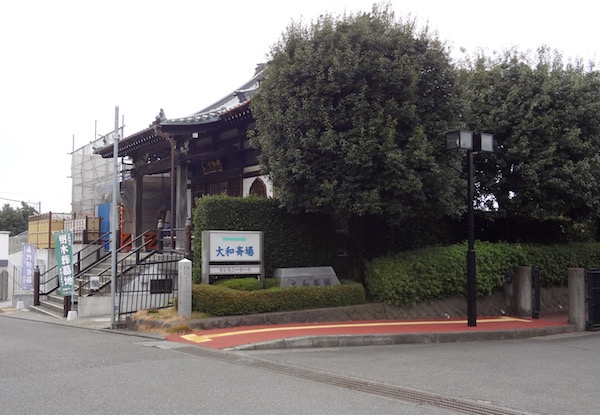 交差点を右に入るとすぐ右に大和斎場の看板がある。告別式でもあったのが多くの車が大和斎場に入っていく。