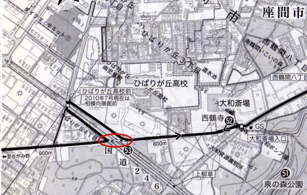 国道246号線を右に行き相模向陽館高校交差点(以前はひばりが丘高校前交差点)へ。ここで国道246号線を渡る。