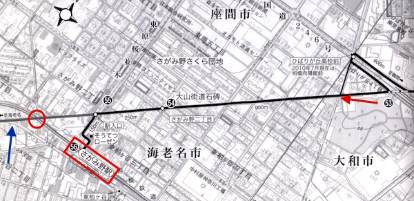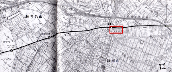 明治地図ではさがみ野駅は赤枠のあたりであろう。