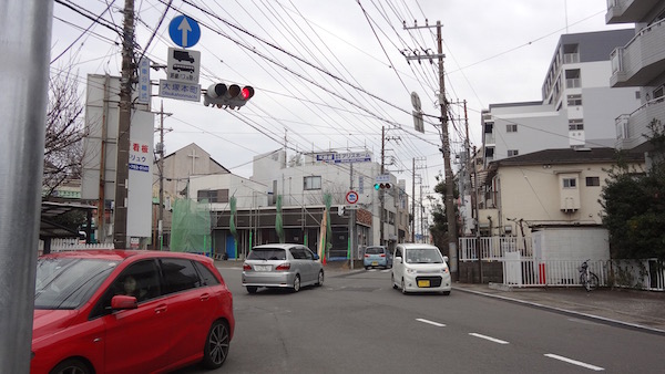 大塚本町交差点である。道はそれほど広くないが交通量は多い。