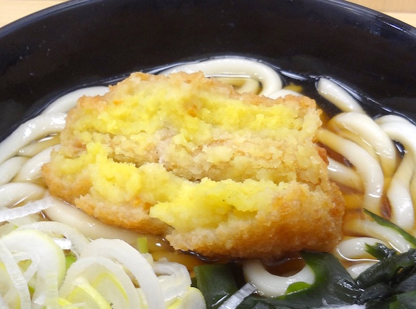 カレー味のコロッケがうどんとよく合う。