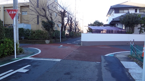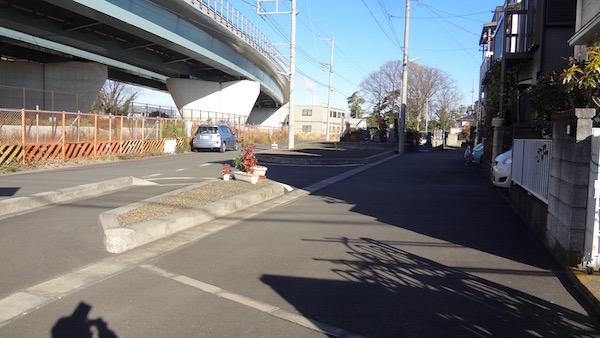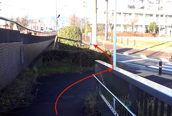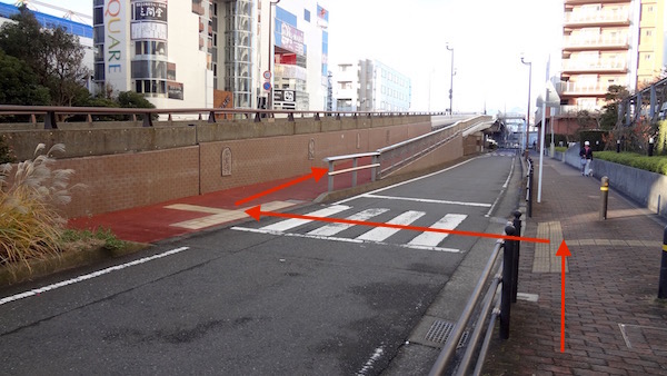 歩行者は途中から坂道を登る。