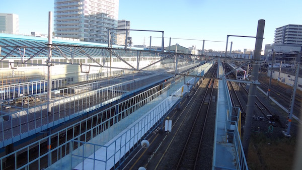 跨線橋の右には小田急の海老名車両基地が見える。