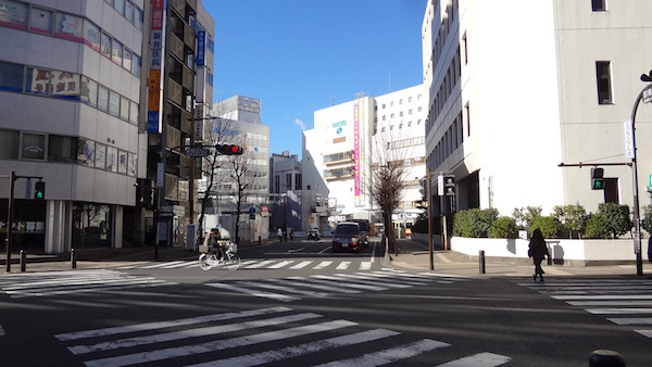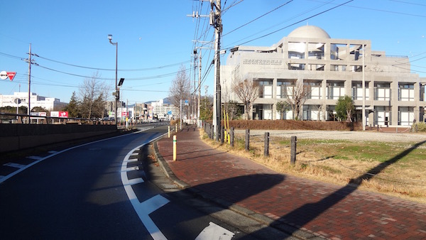 市立図書館前交差点を直進する。