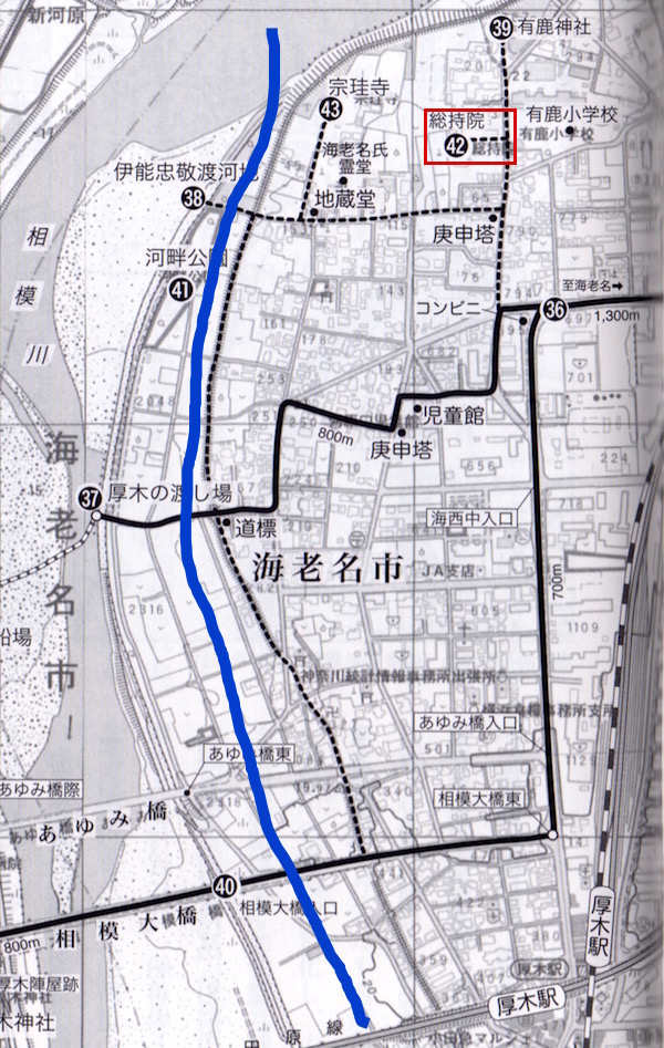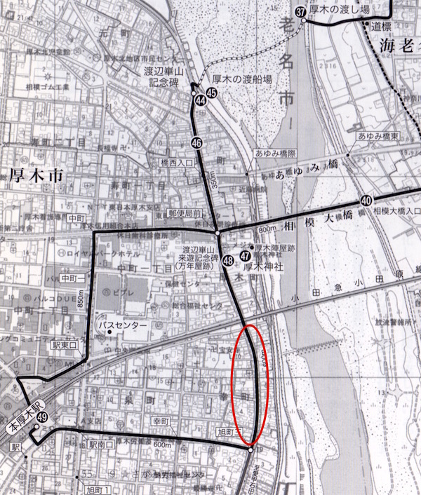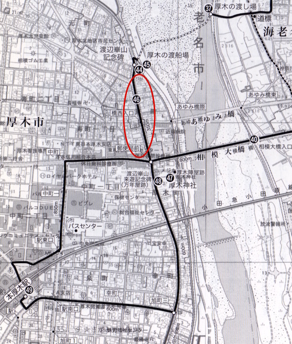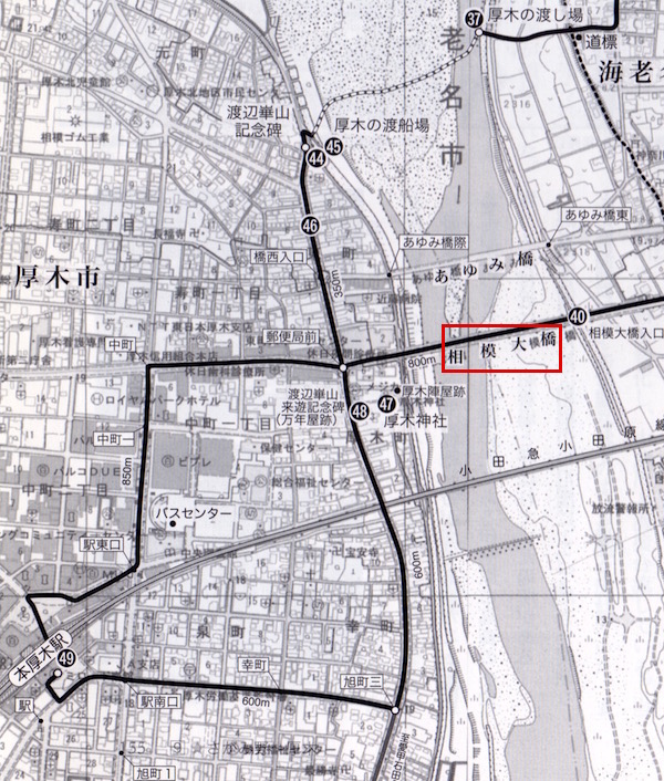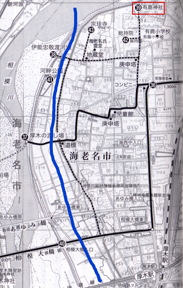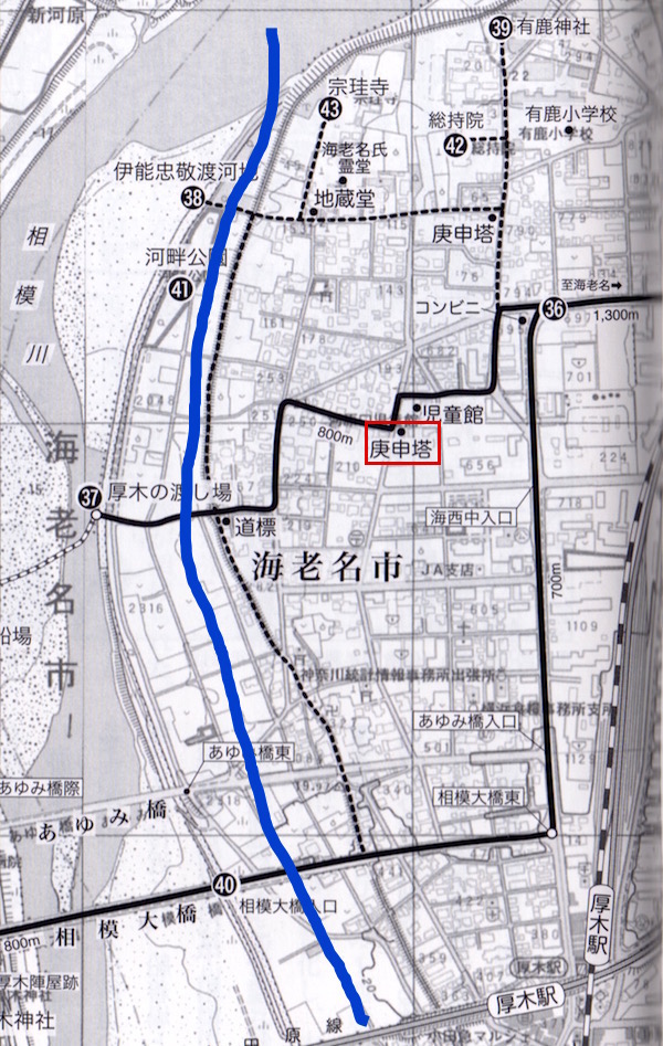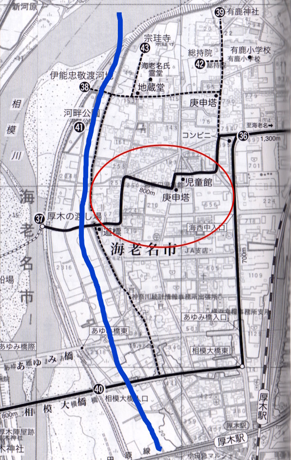 (37)厚木の渡し場。青い実線は圏央道。