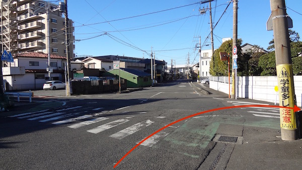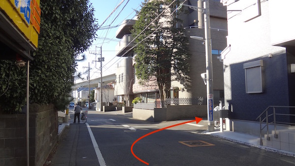 この角を右折する。