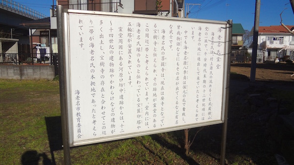 海老名市立図書館の前に「いちおおなわ」と書いてある。一大縄とは国分宿から河原口交差点までの約2Hの一直線の道のことである。中世の条里制の名残で東西の基準線がこの一大縄ということである。