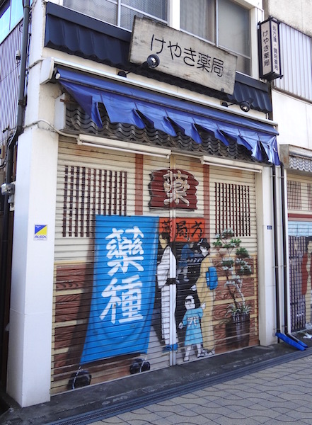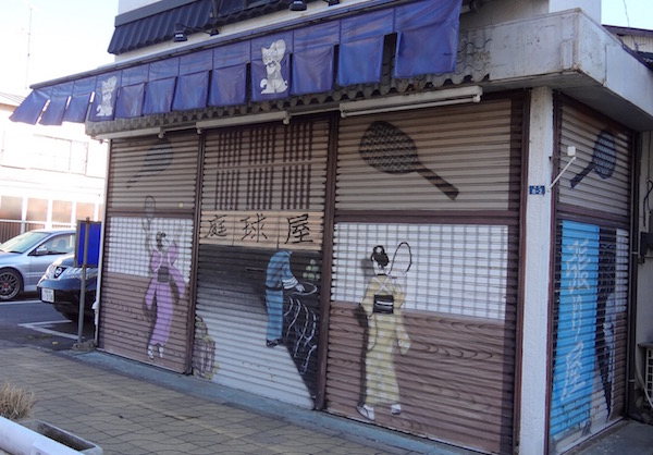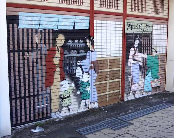 シャッターにいろいろな絵が描かれている。これは「だんご」と「御休所」だ。