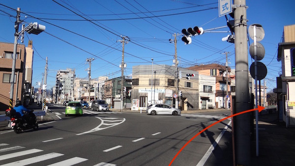 東町郵便局前交差点に戻ってきた。今度はここを直進する。