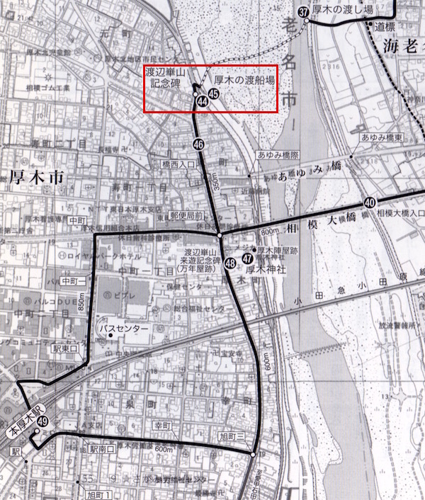 (44)渡辺崋山来遊記念碑、(45)厚木の渡し