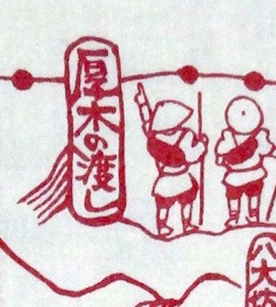 すごろく手ぬぐいにも厚木の渡しが描かれている。