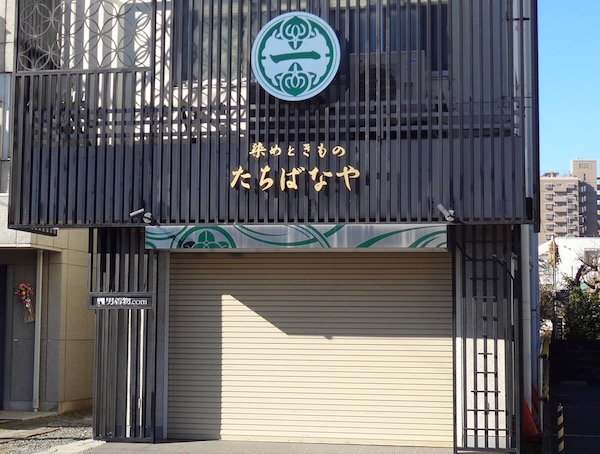 街道沿いの呉服屋さんも多い。「染めときもの たちばなや」。
