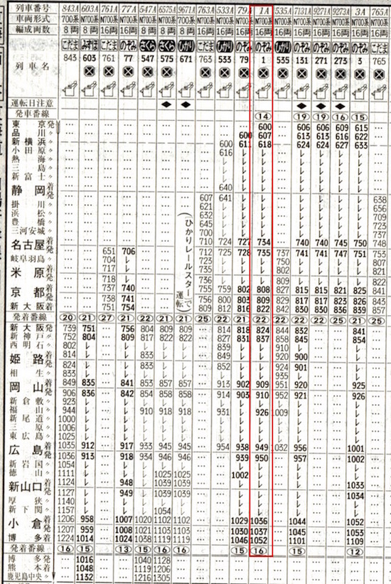 時刻表の464、465ページに東海道新幹線の特集がありました。