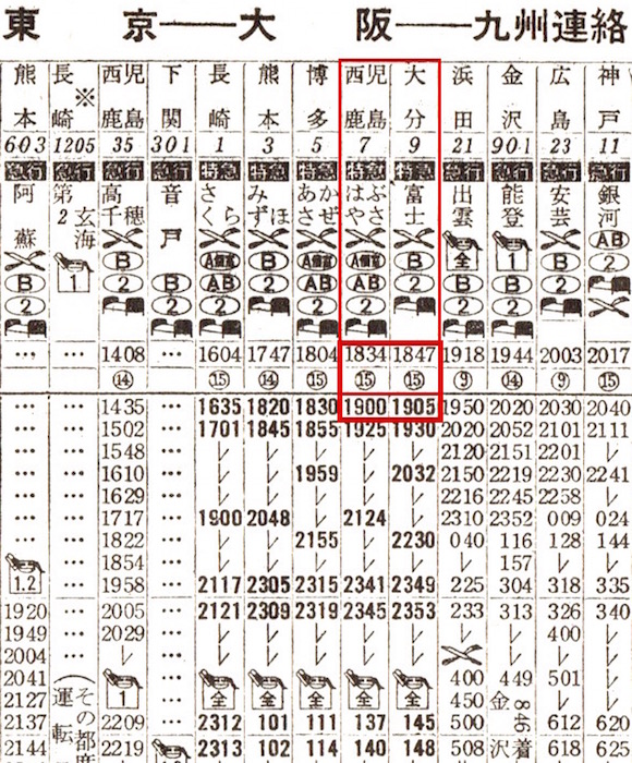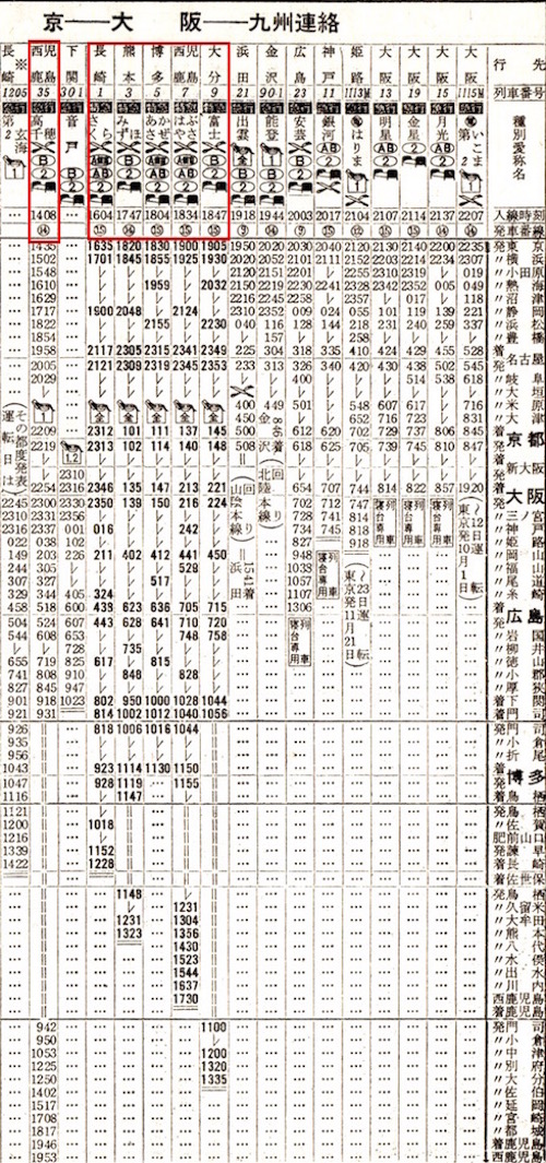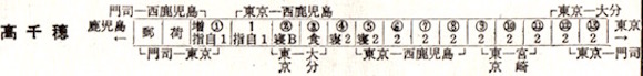 【寝急03】高千穂:東京1435−0945小倉0950−(日豊本線)−1953西鹿児島(現:鹿児島中央)