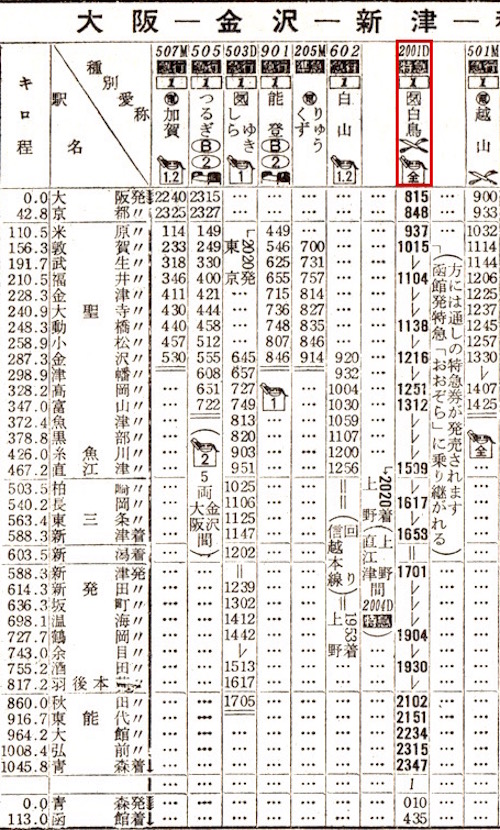 【特02】白鳥:大阪0815−1506☆直江津1509−2347青森