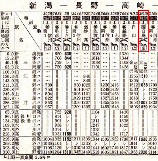 直江津で分割された上野行きは信越本線で高崎へ、そして高崎線・東北本線で20時20分に上野へ到着します。大阪から上野まで乗り通す乗客はおそらくいなかったことでしょう。