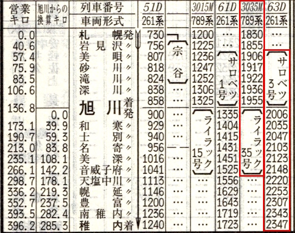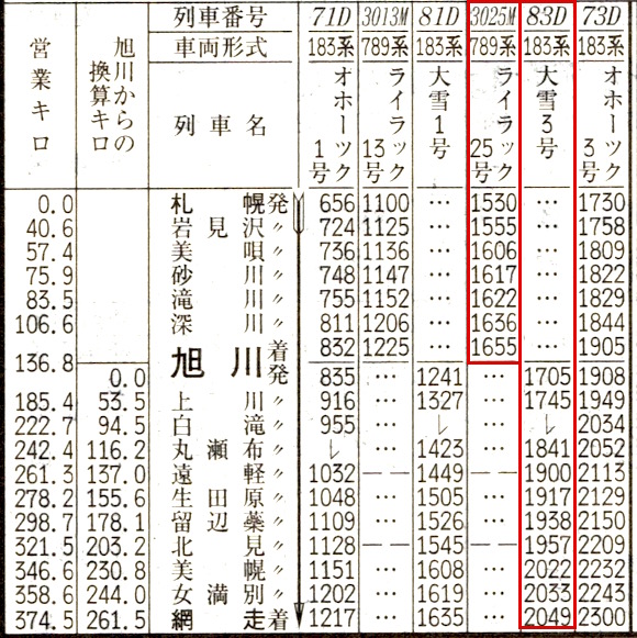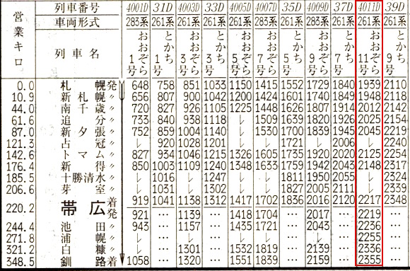 【特04】おおぞら:函館0455−0925札幌0929−1033☆滝川1037−1525釧路