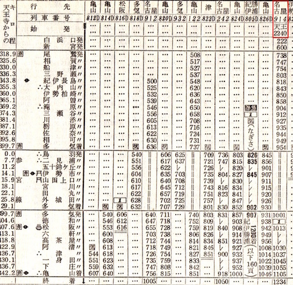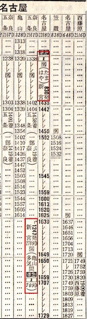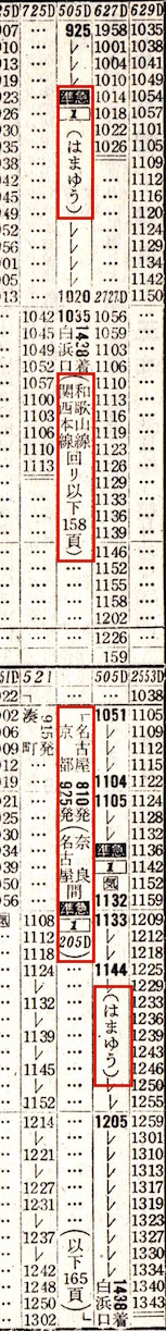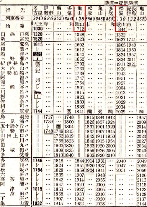 【準22】はやたま:新宮0830−1030★白浜口(現:白浜)1035−1249☆東和歌山(現:和歌山)1250−1438王寺1442−1625★亀山1630−1729名古屋