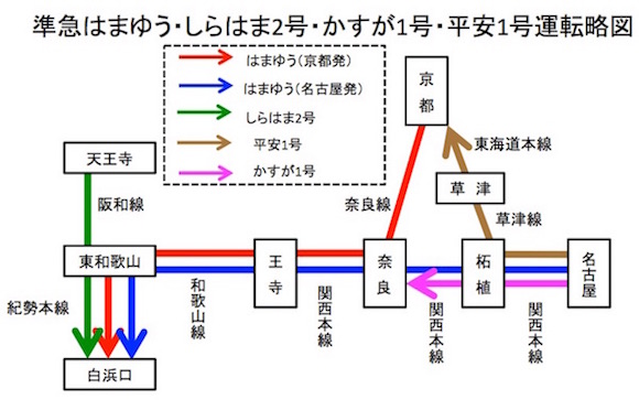 【準18b】はまゆう:京都0925−1020★奈良1035−1049王寺1051−1229★東和歌山(現:和歌山)1236−1438白浜口(現:白浜)