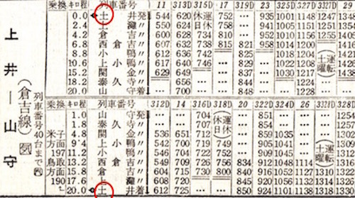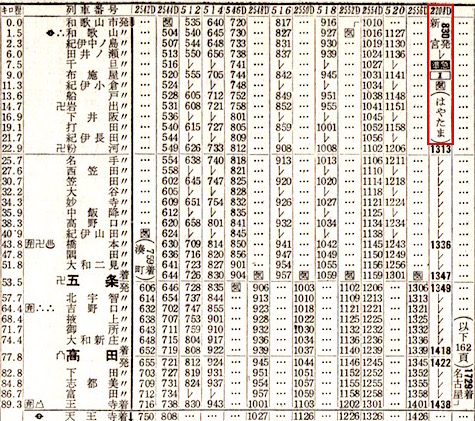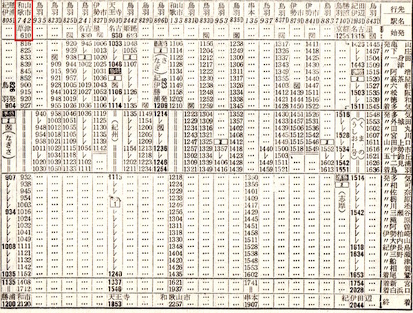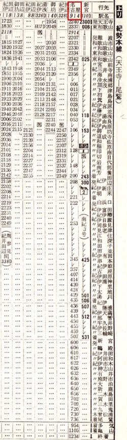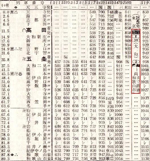 上の時刻表の下半分は和歌山線です。王寺からは和歌山線で東和歌山(現:和歌山)へ向かいます。