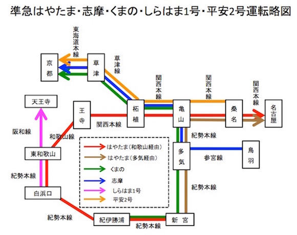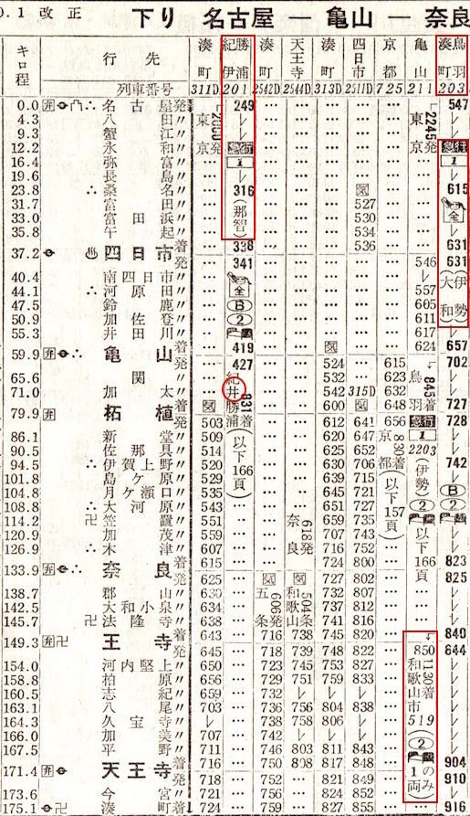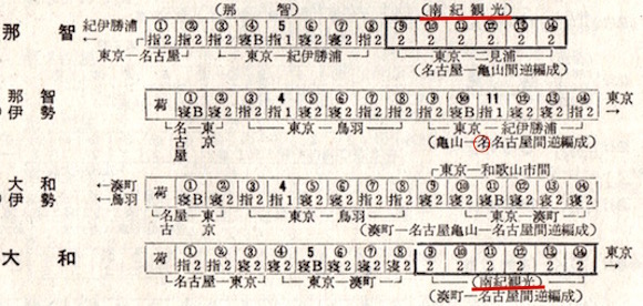 また上りの東京方面へは、今度は那智と伊勢が亀山で併合され、大和は独立で運行することになっています。
