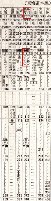 【寝急13】大和:東京2245−0535名古屋0547−0657☆亀山0702−0926湊町