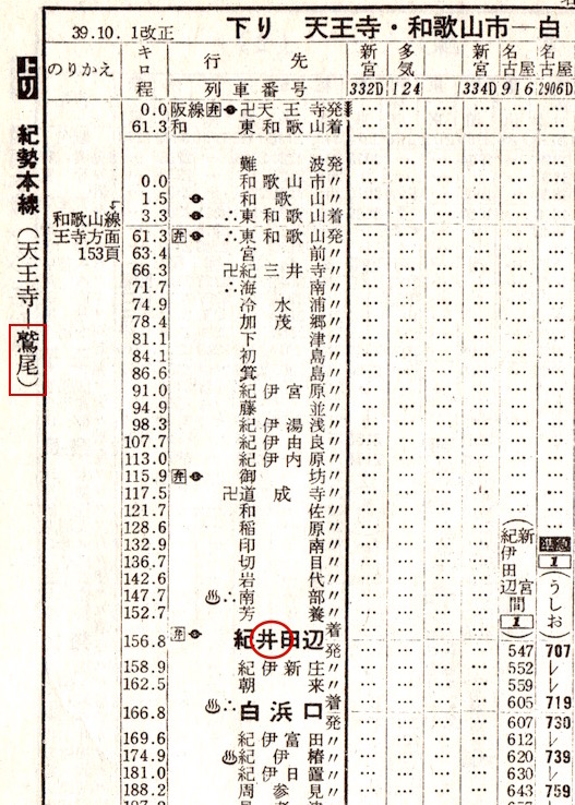 【準25】しらはま1号:★白浜口(現:白浜)1035−1249☆東和歌山(現:和歌山)1257−1349天王寺