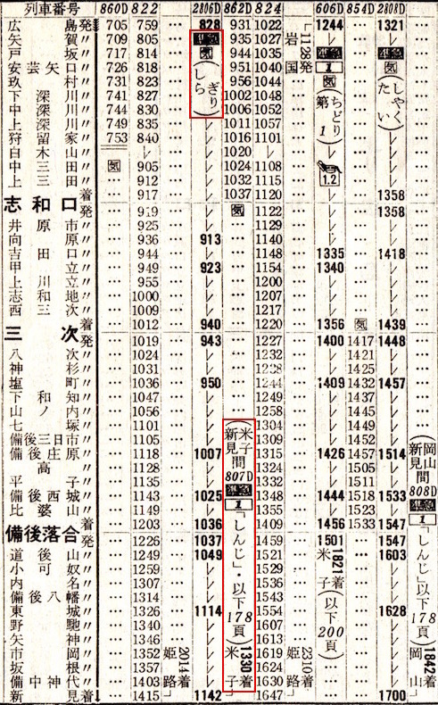 【準28】ひるぜん:岡山1415−1543★☆津山1552−1723鳥取1726−1821上井(現:倉吉)