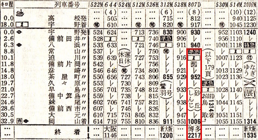 【準27】みささ:大阪1240−1546★津山1552−1723鳥取1726−1821上井(現:倉吉)