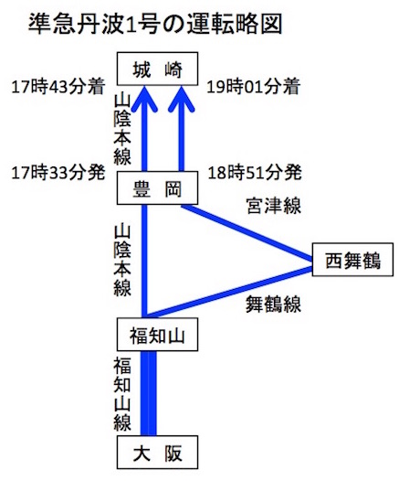【準37】丹波1号:大阪1400−1610☆福知山1615−1731豊岡1733−1743城崎(現:城崎温泉)