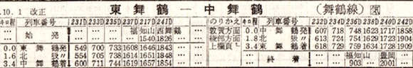 東舞鶴から中舞鶴までわずか3.4kmの支線がありました。東舞鶴駅からスイッチバックして入線する形でした。戦時中は賑わっていたそうですが、この頃は1日6往復でした。しかし、1972年(昭和47年)に廃止されました。