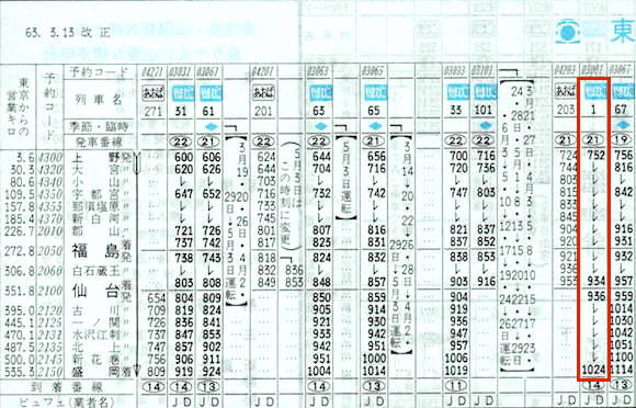 東北新幹線は当初は大宮発着でしたが、1985年から上野発着になりました。盛岡以北は工事中です。速達タイプのやまびこ(ひかりに相当)と各駅タイプのあおば(こだまに相当)があります。やまびこ1号は上野7時52分発で仙台のみに停車し盛岡10時24分着で、所要時間は2時間32分です。