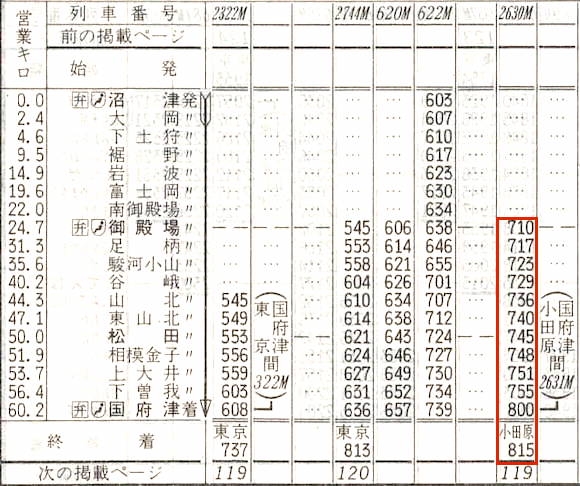 【普通】2631M:御殿場0710→0800国府津0806→0815小田原(御殿場→国府津2630M)【1時間15分】