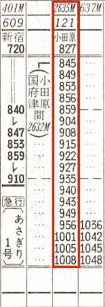 【急行あさぎり1号】401M:新宿0720→本厚木0806→松田0840→0910御殿場【1時間50分】