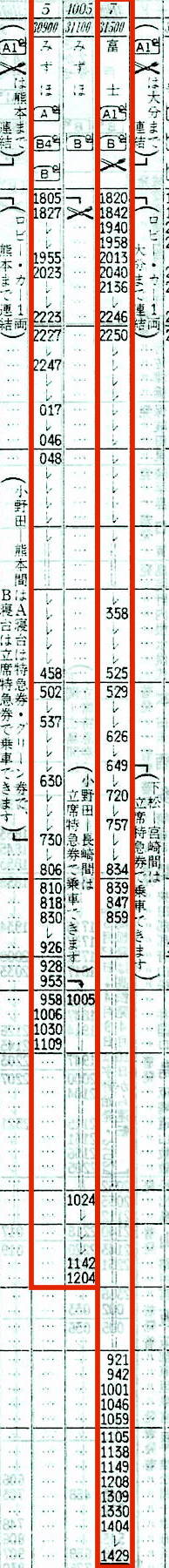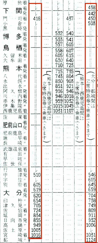 【寝台特急富士】7:東京1820→1841横浜1842→2038静岡2040→2246名古屋2250→0525広島0529→0834下関0839→0859小倉0900→1059大分1105→1429宮崎【20時間09分】