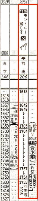【特急モントレー踊り子】9028M:伊東1618→1642熱海1642→1703小田原1704→1754横浜1755→1822新宿(9021M)1823→1855大宮1856→1957高崎1958→2008前橋【3時間50分】