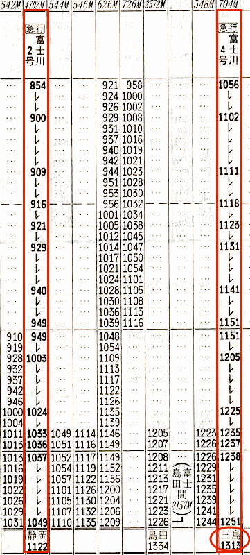 静岡と甲府を身延線経由で結んでいるのが急行富士川1〜10号ですが、富士川7号と4号は三島発着です。三島からだと富士で進行方向を変えなくてよいのでいいですね。