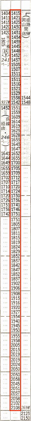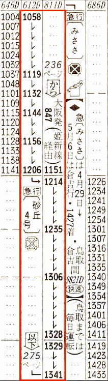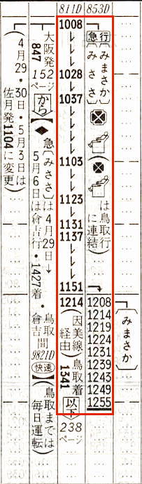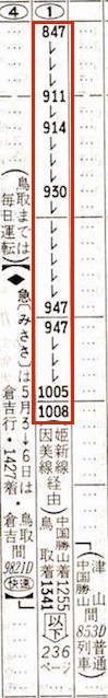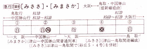 【急行みささ】811D:大阪0847→1005姫路1008→1151★☆津山1214→1341鳥取【4時間54分】