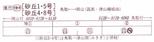 【急行砂丘4号】612D:岡山1058→1206★津山1214→1341鳥取【2時間43分】