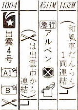 ともに10両編成で、1号で浜田まで行くのは4両です。そして1号のA寝台は終点の浜田まで連結されています。禁煙車両は1両のみです。